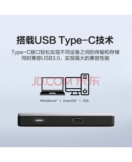 西部数据(WD)1TB 移动硬盘 type-c Ultra系列 2.5英寸 银 机械硬盘 笔记本电脑外接加密兼容Mac 大容量家庭存储