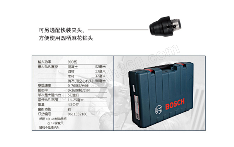 | 核心规格 | 220V 适用范围14~25mm 快速更换夹头 |