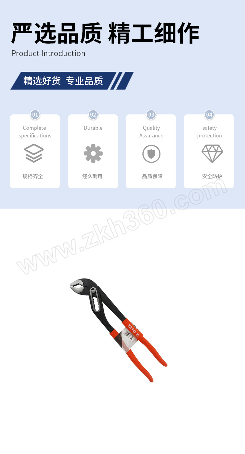 ·优质铬钒钢精锻,坚固耐用。 ·头部可调整夹持范围。