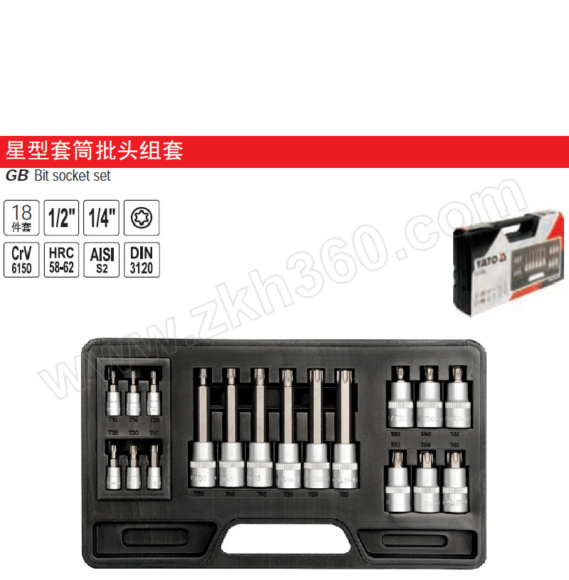 | 产品名称 | 1/4"×1/2"星型套筒批头组套 |