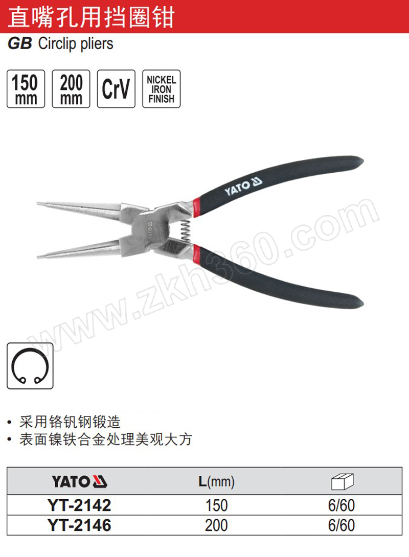 | 产品名称 | 直嘴孔用挡圈钳 |