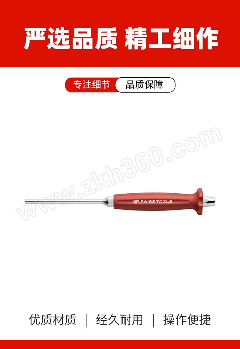 ·PB Swiss Tools中心冲头和销式冲头可实现安全且经济的作业 ·标准的精度、硬度和韧性适用于所有工业、制造业及个人使用 ·特殊合金钢经过热处理,保证在高硬度下具有明显的弹性,当受到过度的压力,PB瑞士工具销式冲头变形具有弹性和可塑性,不会突然折断(假设合理使用)