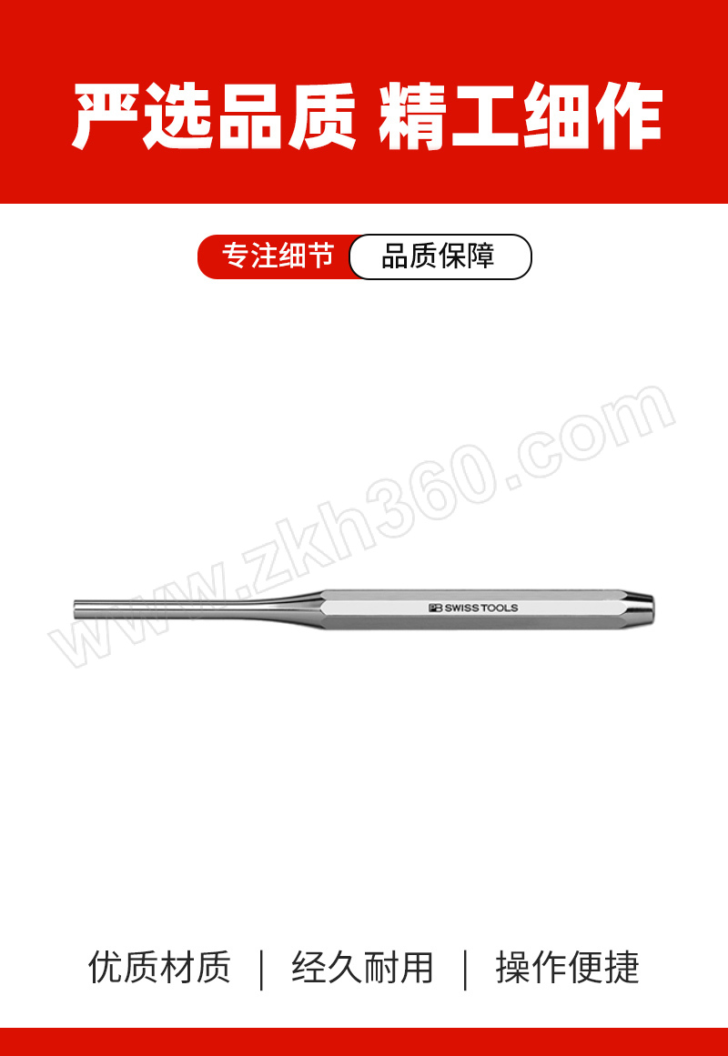·PB Swiss Tools中心冲头和销式冲头可实现安全且经济的作业 ·标准的精度、硬度和韧性适用于所有工业、制造业及个人使用 ·特殊合金钢经过热处理,保证在高硬度下具有明显的弹性,当受到过度的压力,PB瑞士工具销式冲头变形具有弹性和可塑性,不会突然折断(假设合理使用)