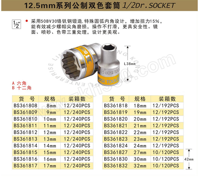 | 产品名称 | 12.5mm系列公制双色套筒(十二角) |