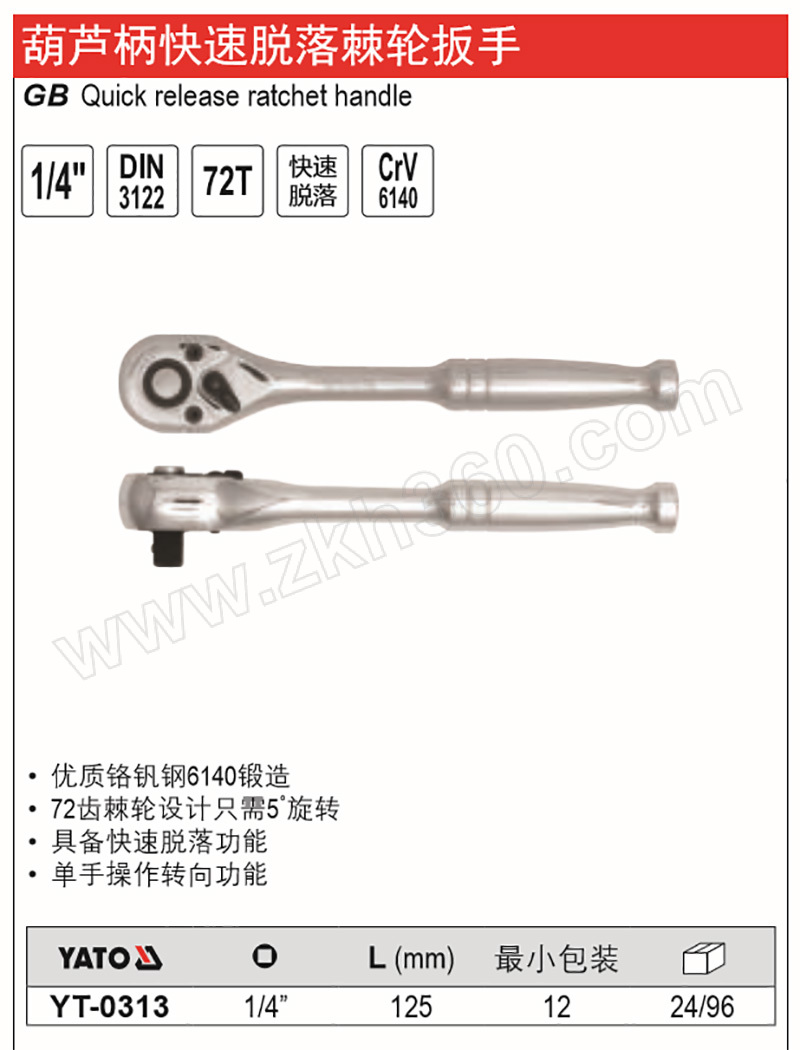 | 产品名称 | 1/4"葫芦柄快速脱落棘轮扳手 |