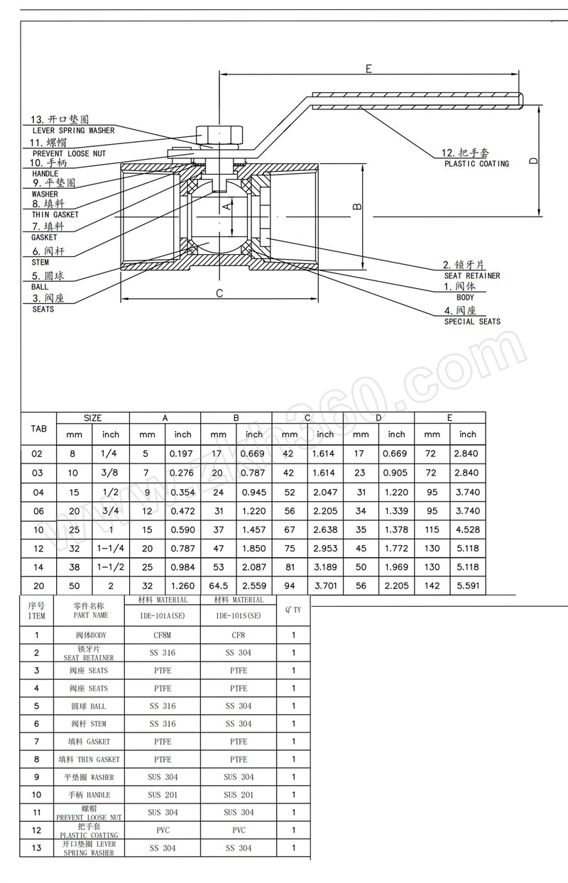 ·不锈钢材质,精选优质304/316不锈钢制造,不易生锈,耐腐耐蚀 ·加厚阀体,抗压性能更好,可靠度高,使用更加持久,安全无忧 ·舒适手柄,结构简单,体积小巧,把手旋转顺畅,不易脱落、使用方便 ·标注清晰,精密铸造,阀体表面字体清晰,查看方便 ·螺纹光滑,螺纹表面光滑无刺,全通径、大流量、管道通路更加顺畅
