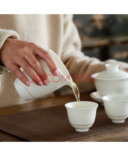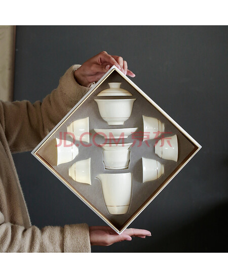 苏氏陶瓷茶具中国白瓷手工描金三才盖碗功夫茶具礼盒套装