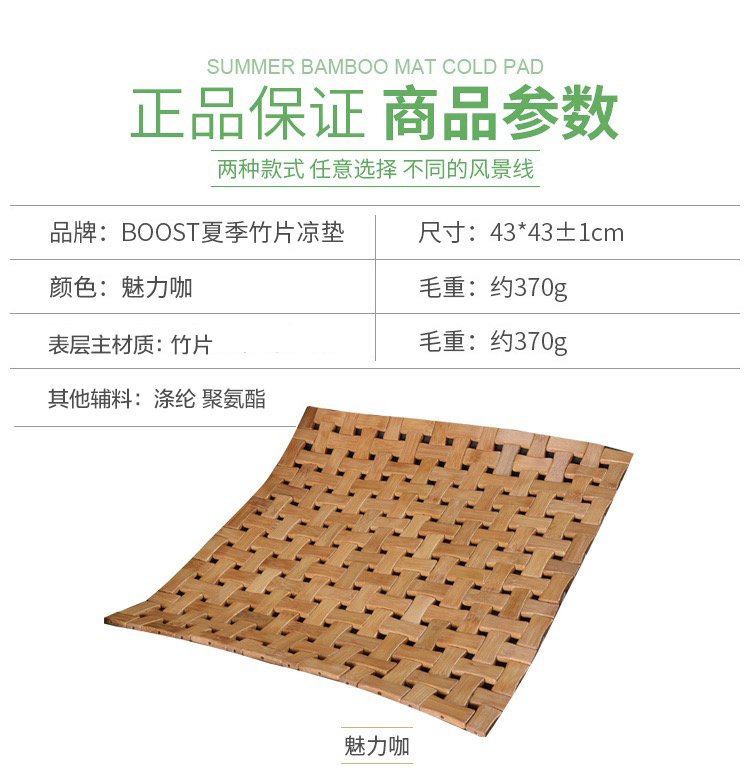 BOOST 汽车座垫坐垫夏季凉垫冰垫 办公室座垫小方垫包边方片竹垫单片