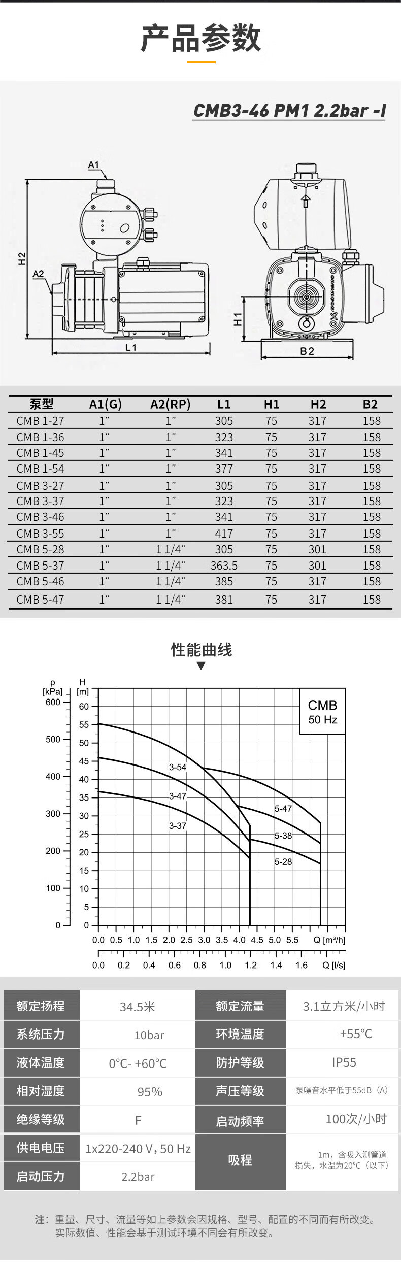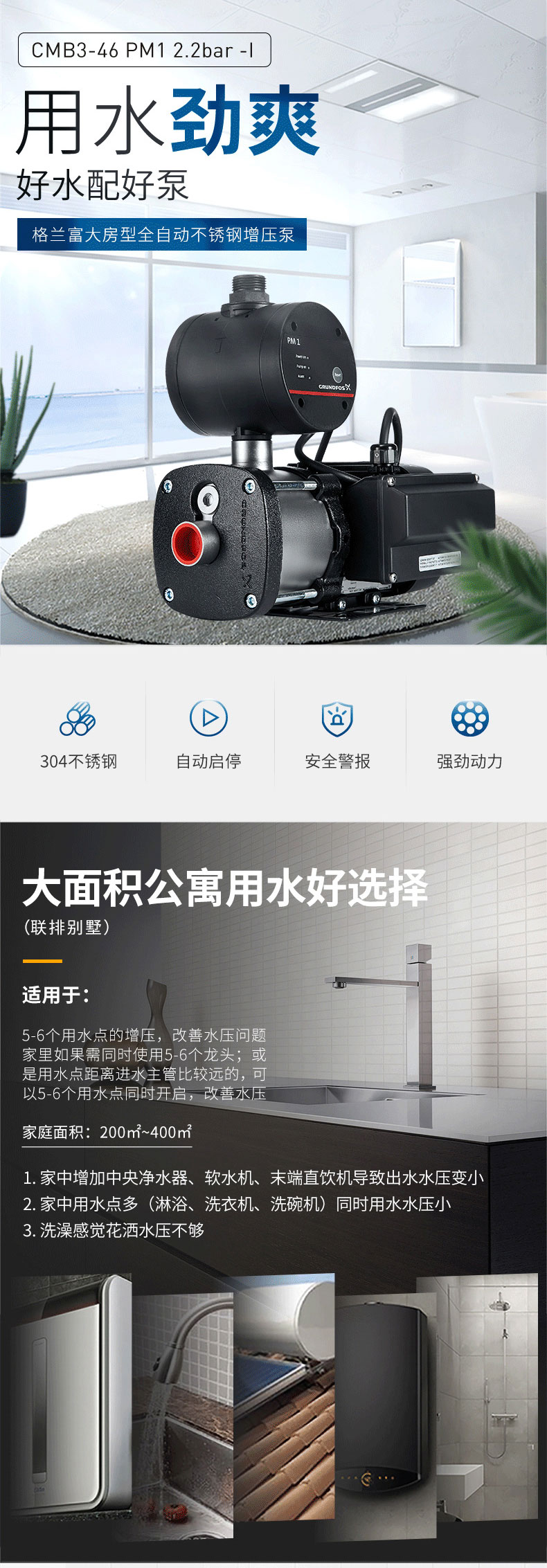 格兰富增压泵全自动 CMB3-46 自来水管道不锈钢加压泵