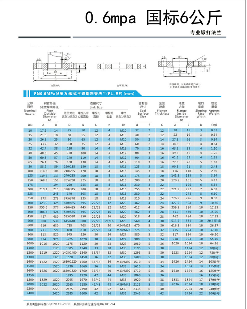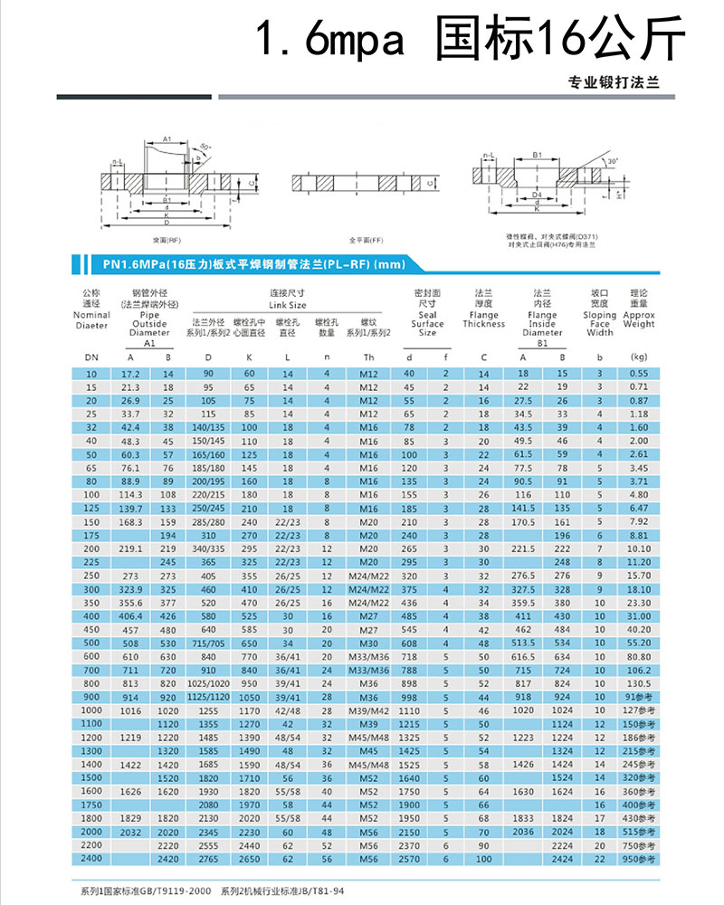 | 碳钢平焊法兰 16公斤级 锻打 | |||||||||||||||||||