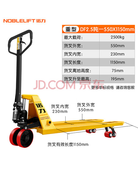 诺力(NOBLELIFT)叉车手动液压车地牛铲车托盘搬运车DF2.5吨宽550叉长1150聚氨脂轮
