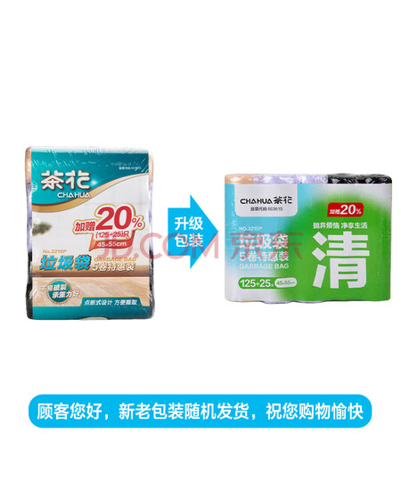 茶花 平口垃圾袋多色45*55cm150只单面1.5丝加厚厨房清洁收纳袋