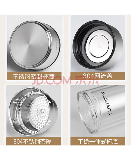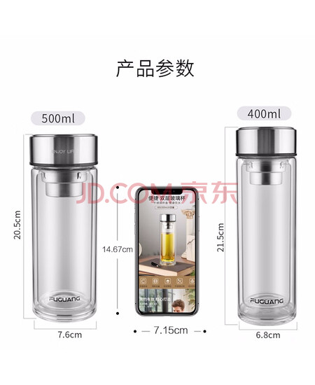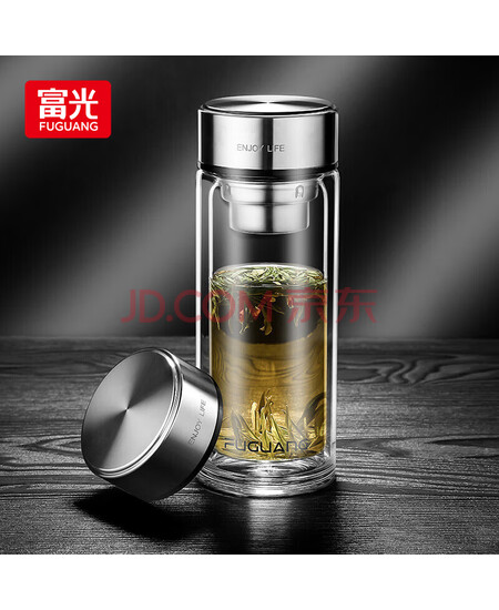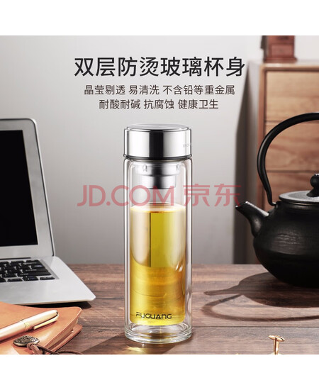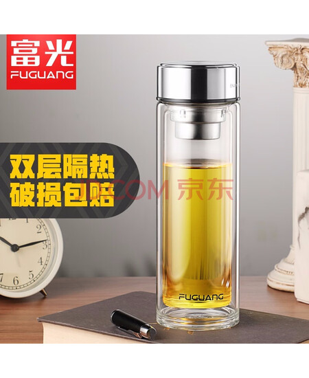 富光玻璃杯双层 带茶隔大容量隔热茶杯高档商务泡茶车载水杯透明杯子