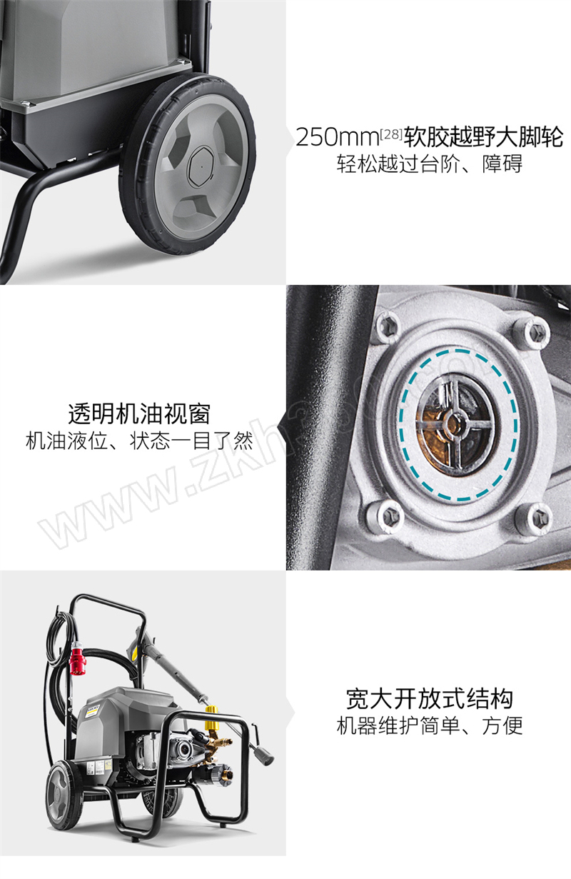 ·大号车轮和符合人体工程学设计的推柄,确保了转向操控性和搬运的便利性
