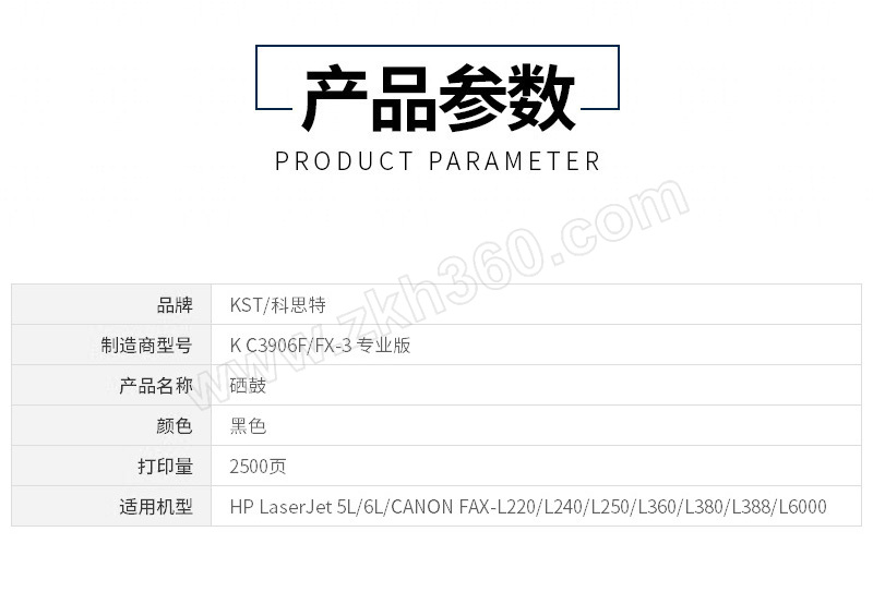 | 核心规格 | 黑色 适用HP LaserJet 5L/6L/CANON FAX-L220/L240/L250/L360/L380/L388/L6000 |