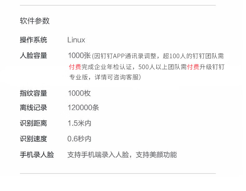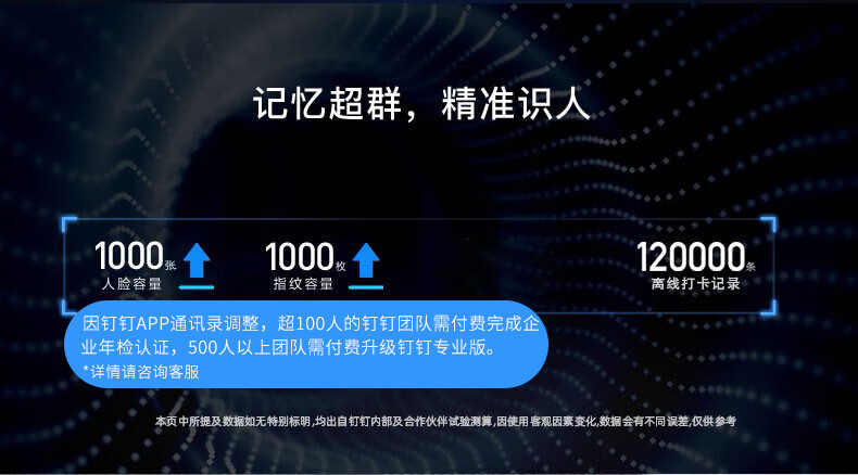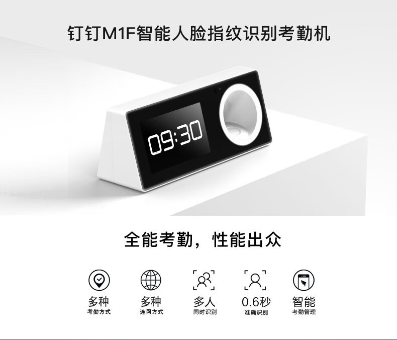 钉钉M1F指纹考勤机人脸识别打卡机人脸机面部识别刷脸扫脸指纹一体机上班签到机 标配升级