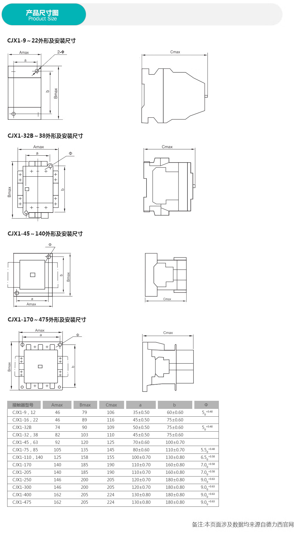 德力西电气 CJX1-85/22 50Hz 220V 85A 2NO+2NC CJX18522M 交流接触器220v