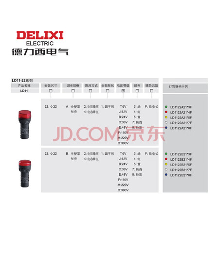 德力西 LD1122A21M5 升级替换:LD11S 指示灯 LD11s-222M5 AC/DC 220V 黄丨LD11S222M5,F