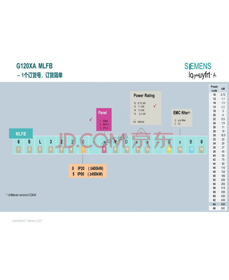 西门子 变频器 G120系列 6SL3210-1PE16-1UL1 2.2kW 5.9A 3AC 380-480V 标准型 订货号:6SL32101PE161UL1