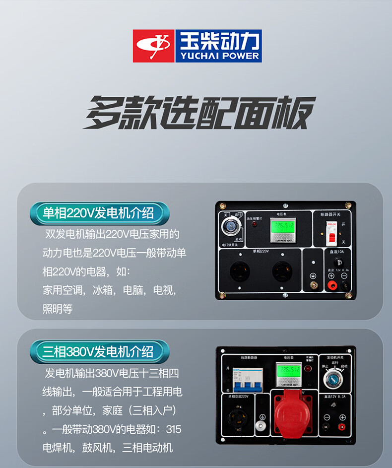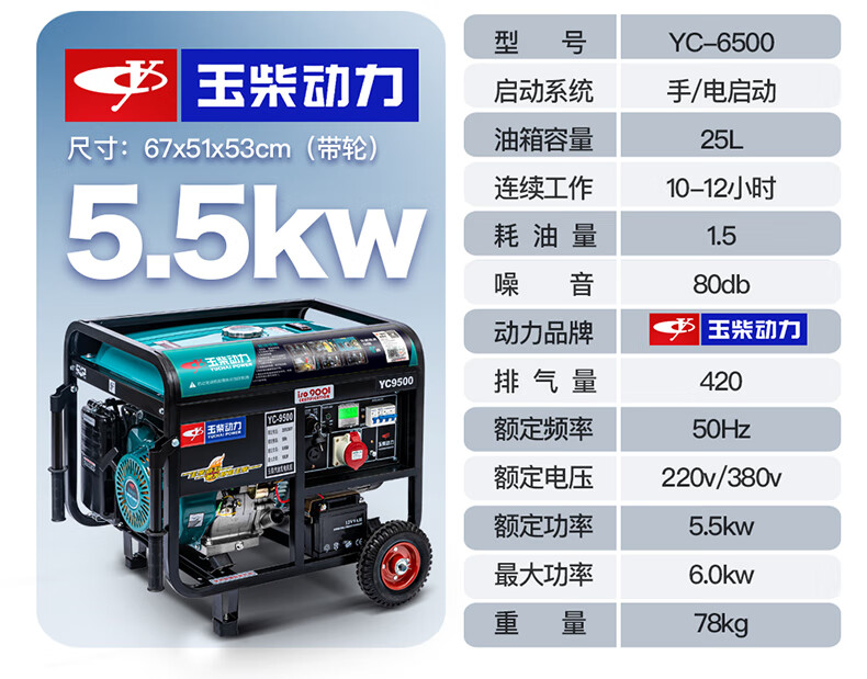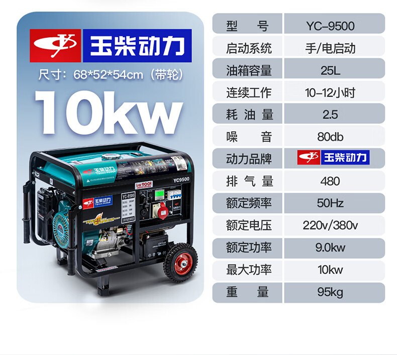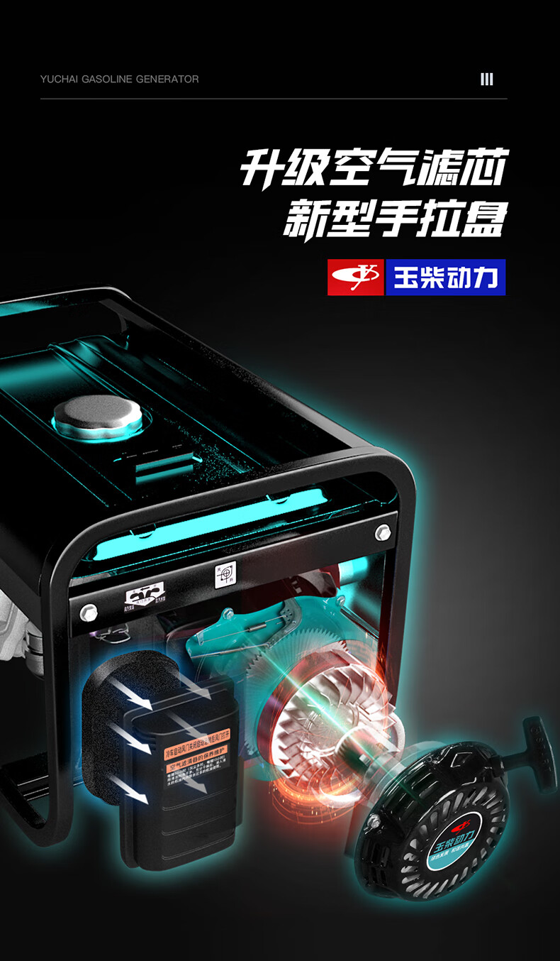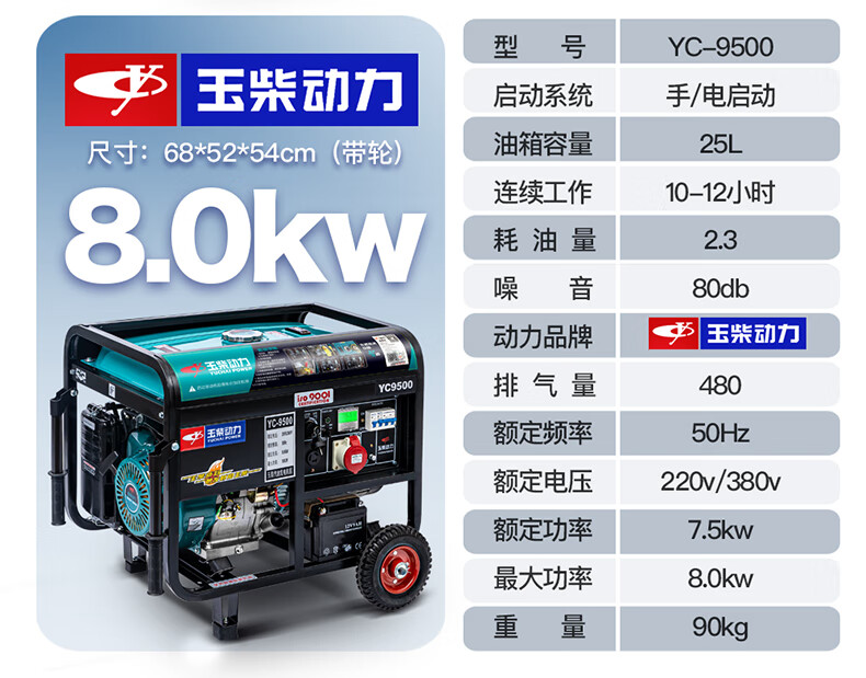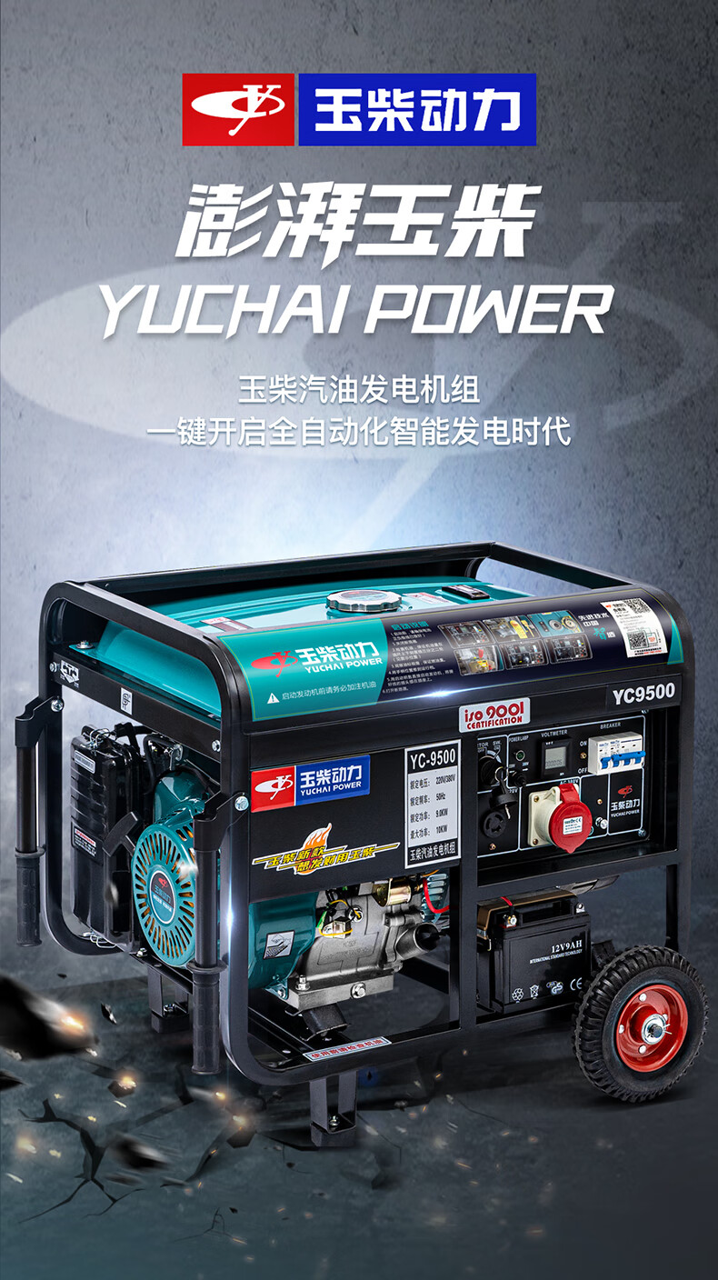 玉柴汽油发电机8KW千瓦电启动开架款单相220V YC9500