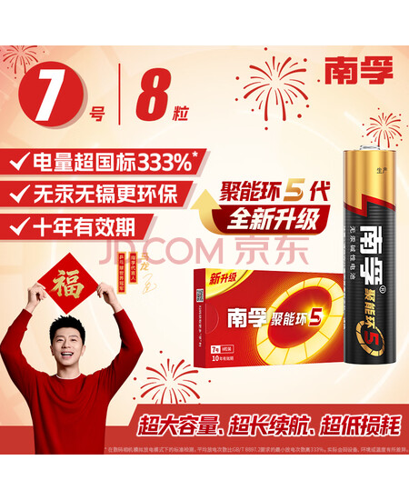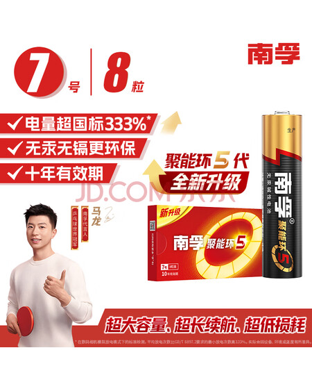 南孚7号电池8粒 七号碱性 聚能环5代 适用血压计/燃气表/遥控器/电子秤/挂钟/无线鼠标/计算器/玩具等