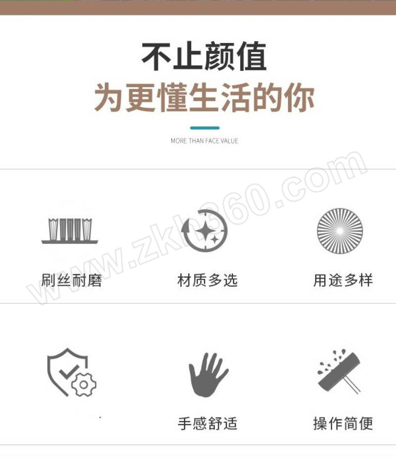 ·经久耐用 ·不易磨损 ·灵活省力 ·毛密结实 ·螺旋接口