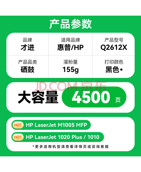 才进适用惠普m1005硒鼓hp1020晒鼓12a易加粉1020plus碳粉1010墨粉m1005mfp打印机1018墨盒q2612a粉盒laserjet