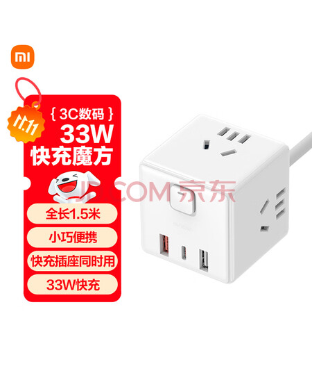 小米(MI)魔方转换器Pro 33W有线快充插座USB插排插线板/排插/拖线板/接线板(MJCXB3-04QM)开关/适用小米17