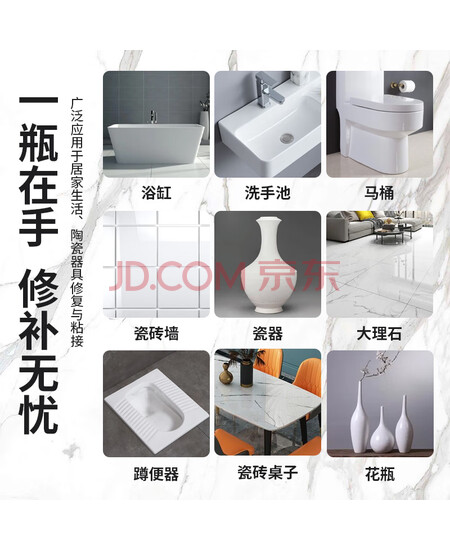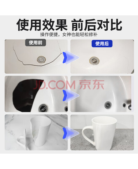 银背陶瓷修补胶 洗手盆马桶水箱裂缝修补剂陶瓷摆件花盆修复胶瓷器粘合剂 瓷白色*2