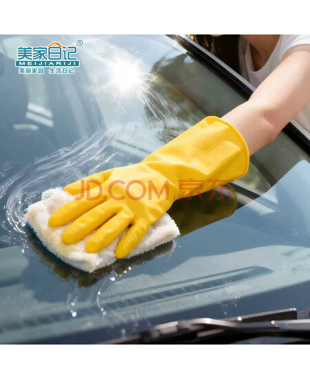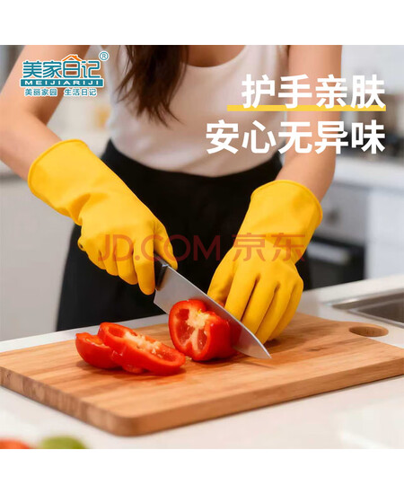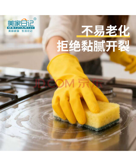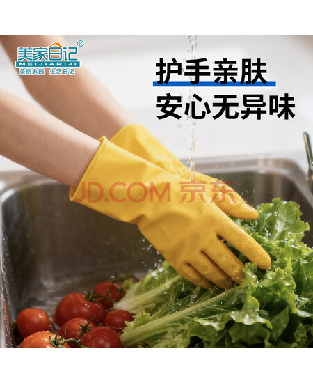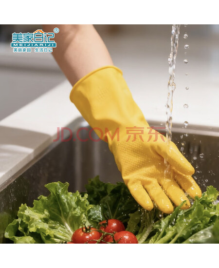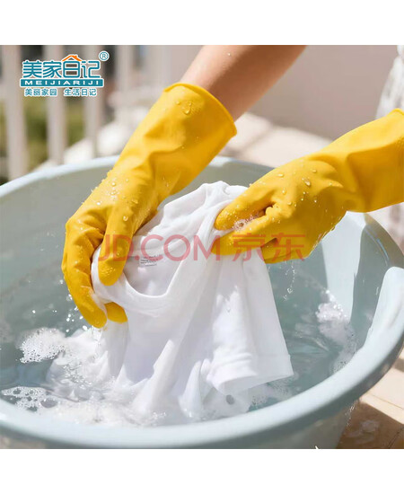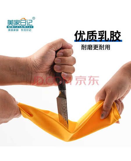 美家日记加厚乳胶牛筋手套 中号2双装 家务橡胶洗碗手套 物业保洁胶皮手套