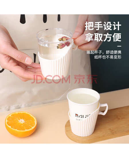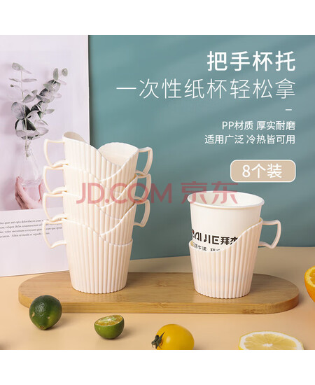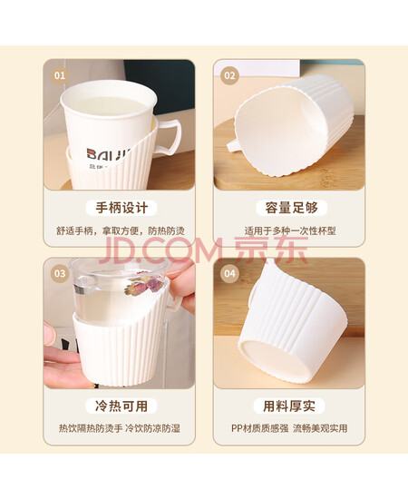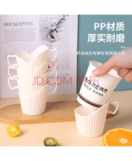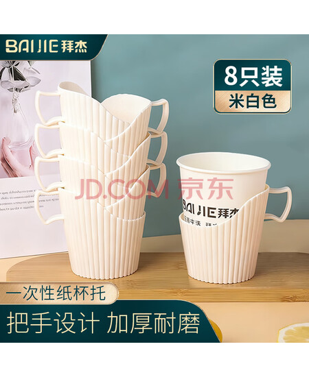 拜杰一次性纸杯托 开水隔热托纸杯垫杯套 塑料杯托底座纸杯托架8只装