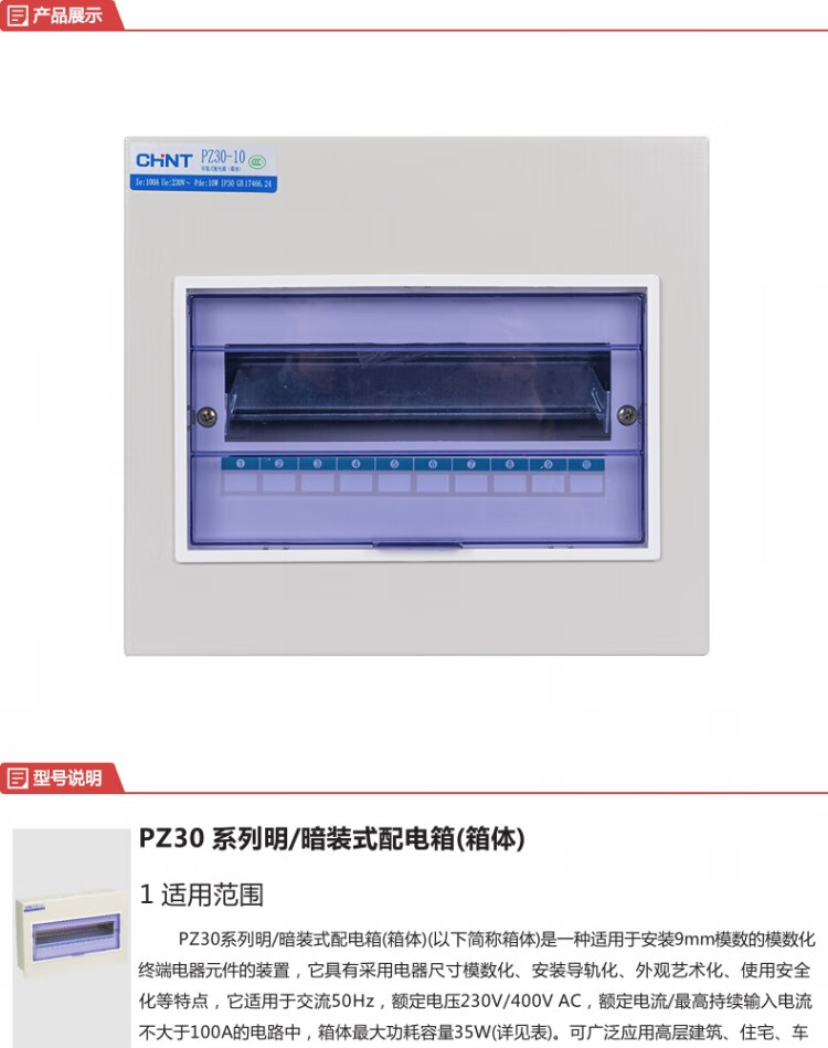 正泰 配电箱 PZ30-10明装配电箱体1mm