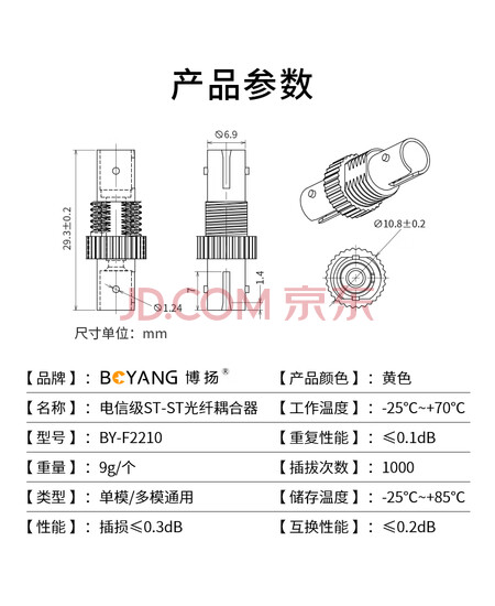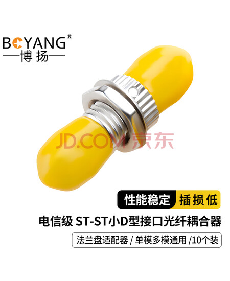 - 包装清单: 博扬(BOYANG)电信级ST耦合器 ST小D型接口 光纤法兰盘适配器光纤延长对接头(10个装)BY-F2210*1 合格证