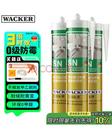 瓦克(WACKER)SN防霉玻璃胶马桶防水密封胶美容胶硅胶结构胶封边胶白色3支装