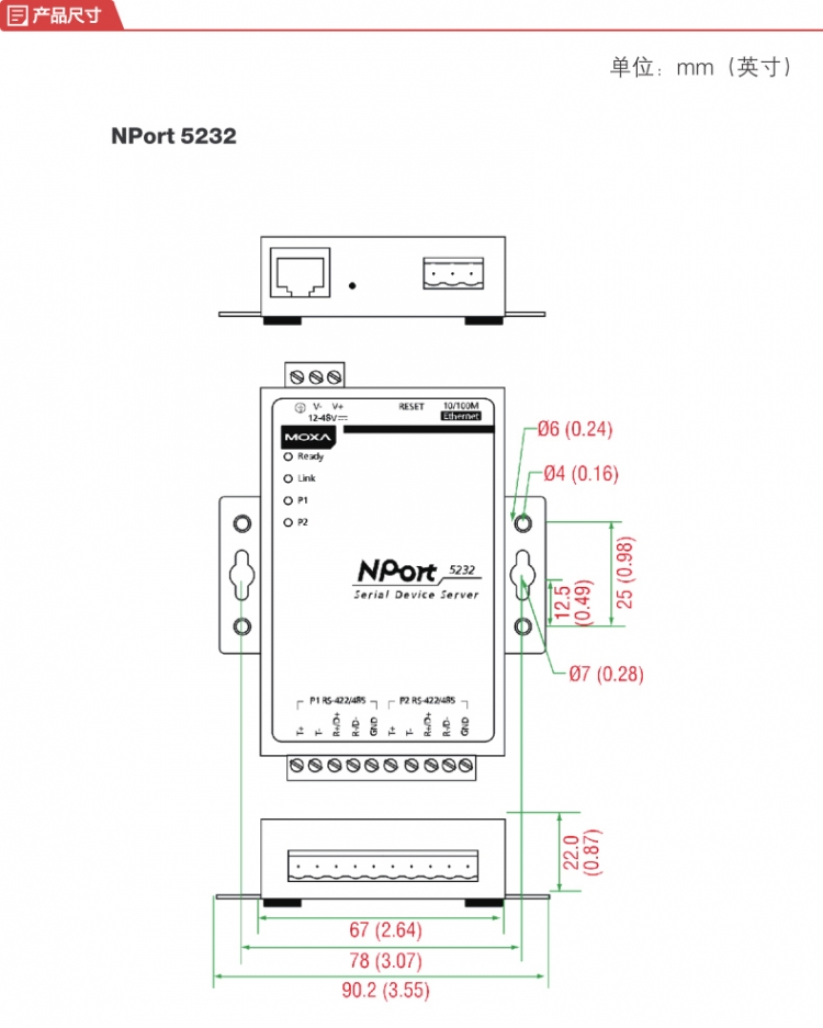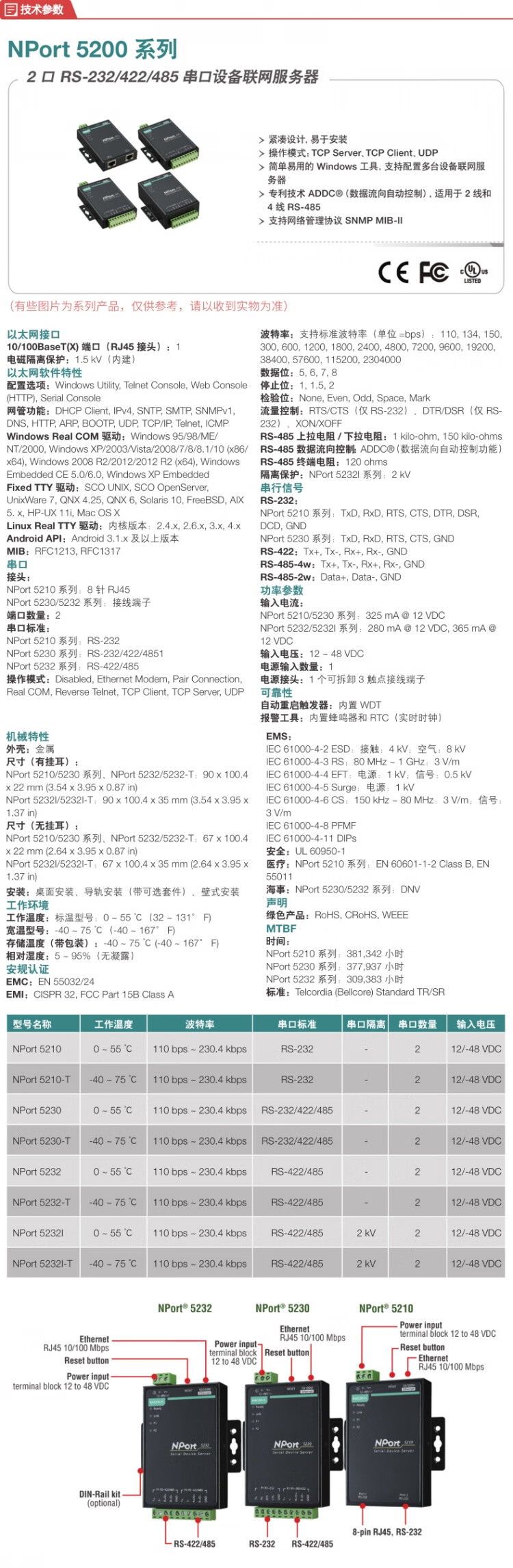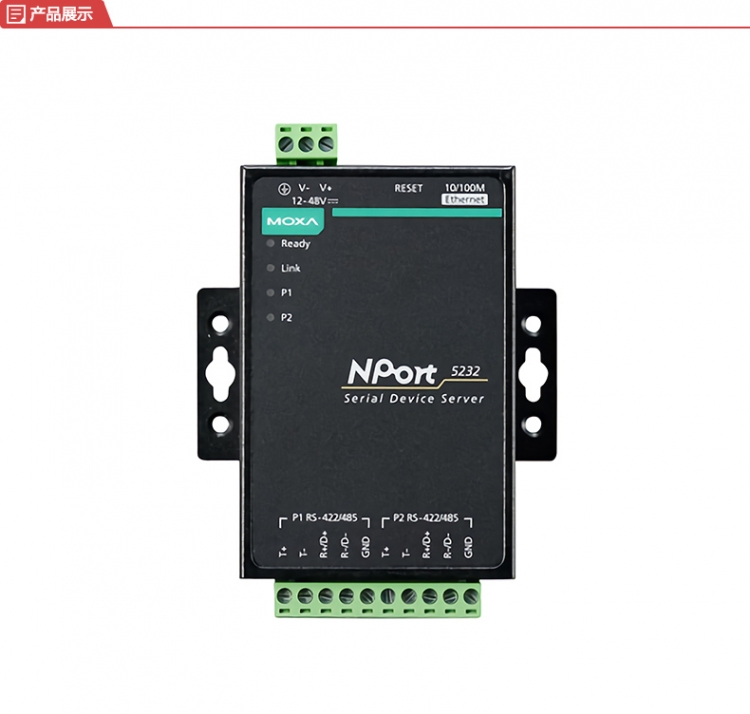 摩莎(MOXA)NPort 5232 2口RS-422/485串口设备联网服务器 不含电源线
