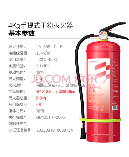 援邦(YUANBANG)大货车载灭火器4公斤干粉灭火器4KG商用家用消防器材国家3C认证
