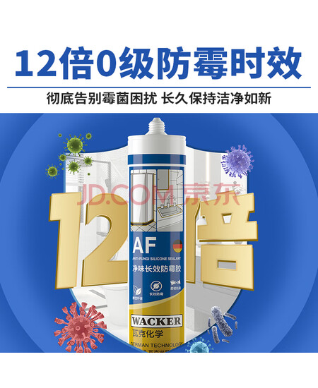 瓦克(WACKER)AF防霉玻璃胶厨卫密封胶防水美容胶中性硅胶马桶封边胶水浅灰色