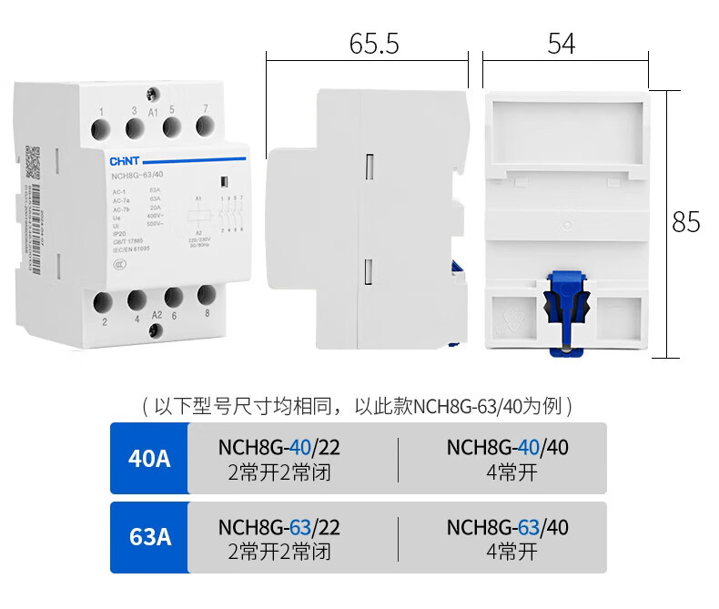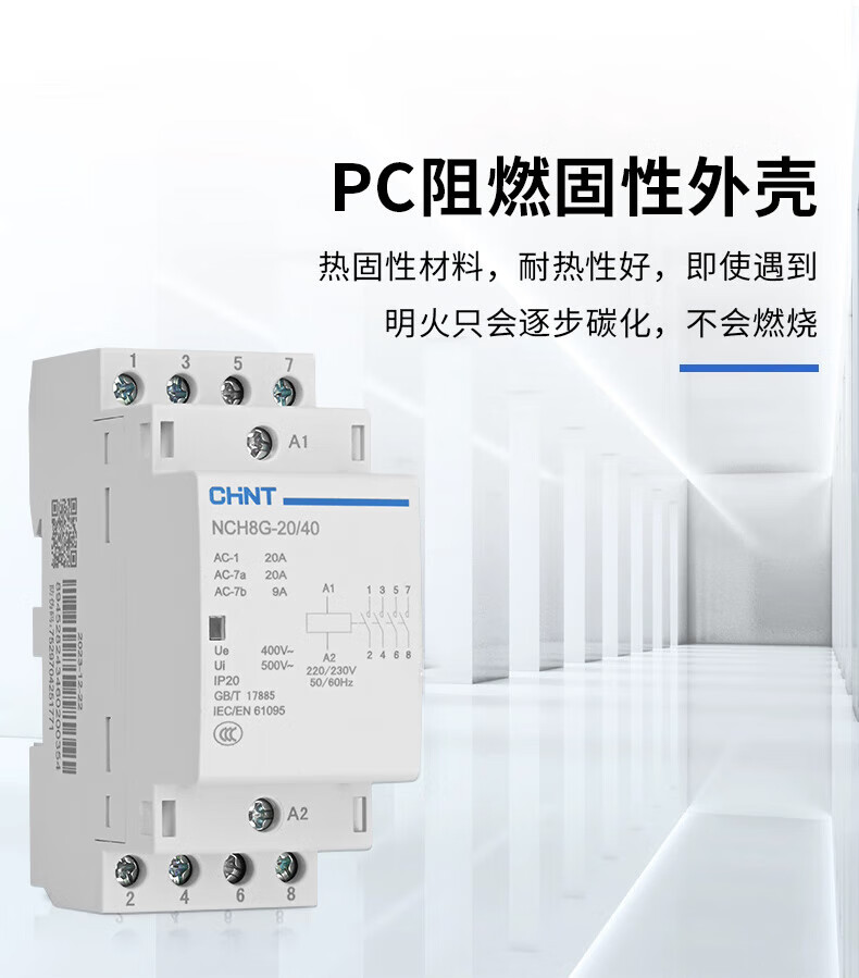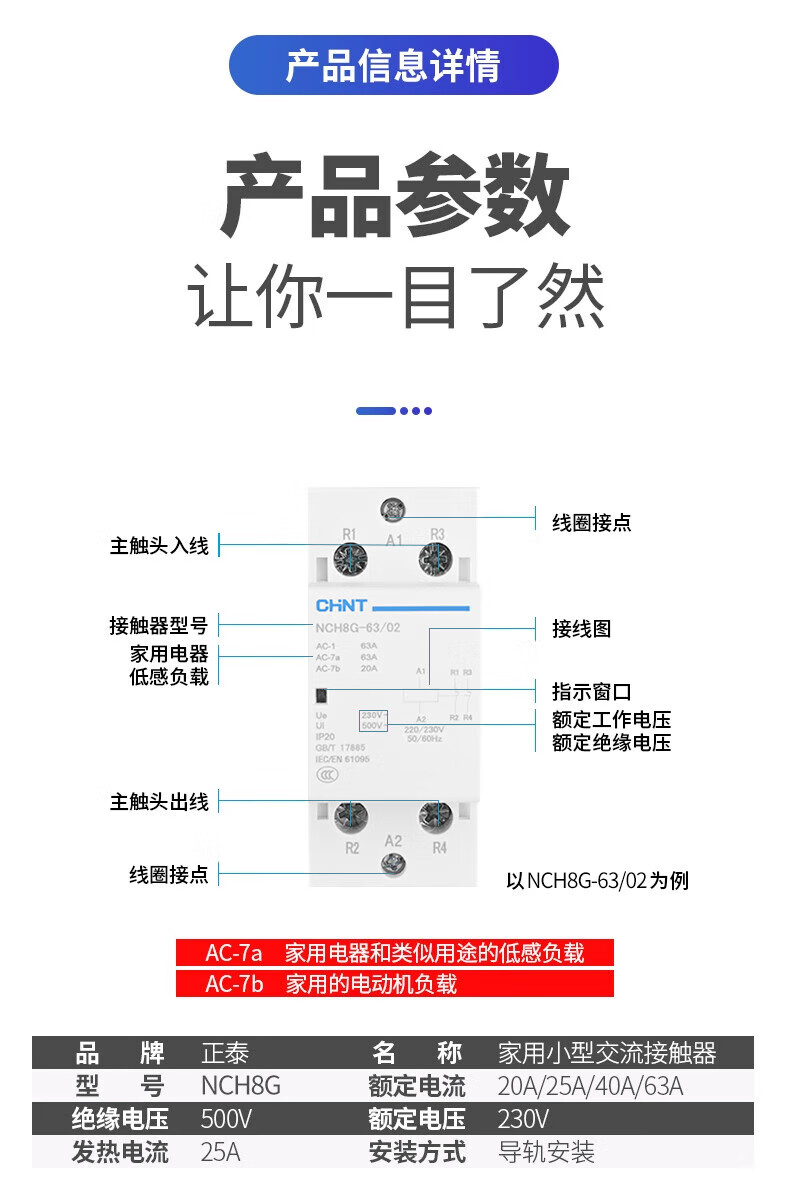 正泰(CHNT)小型单相交流接触器微型导轨NCH8-63/11-220/230V
