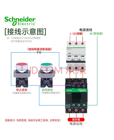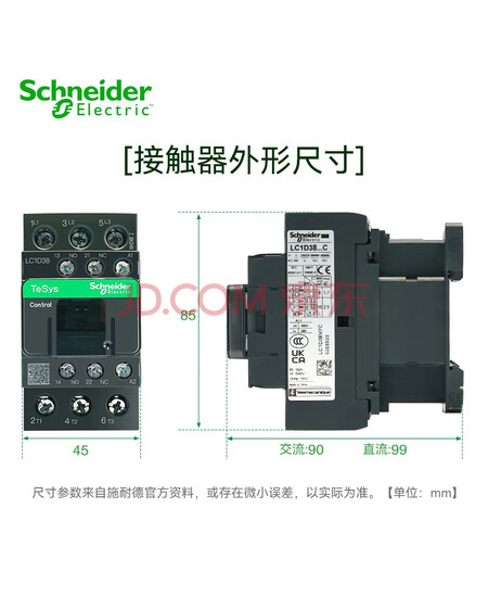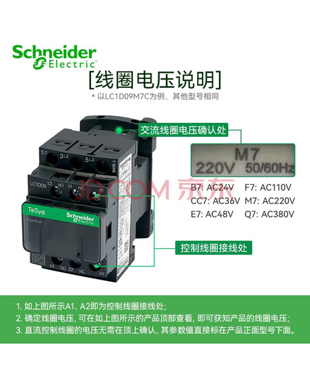 施耐德电气三相接触器交流控制线圈AC220V 38A辅助触点1开1闭 LC1D38M7C