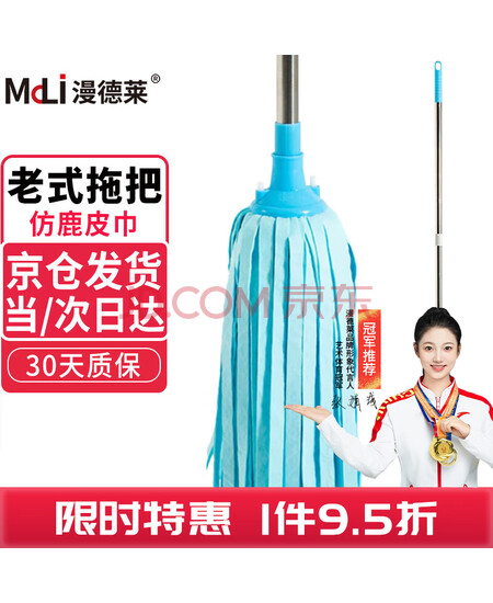 漫德莱 拖把老式墩布地拖环卫木地板传统尘推鹿皮巾款吸水棉布拖布 颜色随机