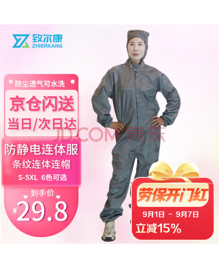 致尔康 防静电服防尘服 连体连帽男女洁净服 无尘服车间喷漆工作服可定制 灰色2XL