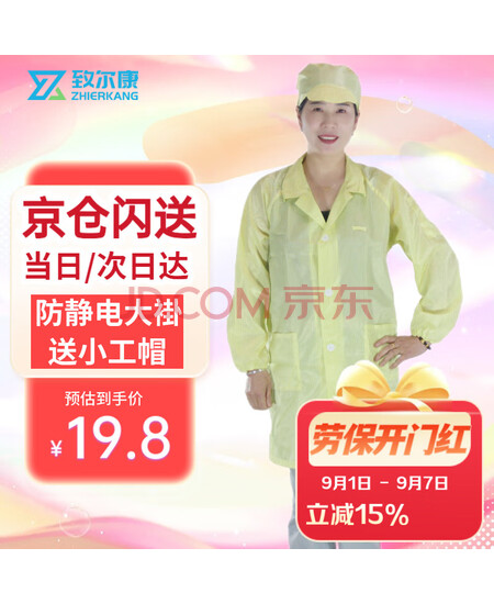 致尔康防静电长袖大褂带帽子 电子厂车间实验室 黄色 L 无尘防尘工作服