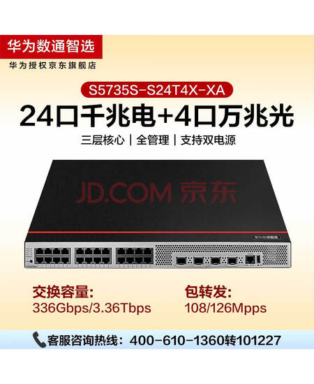 华为数通智选 S5735S-S24T4X-XA 交换机24口千兆电+4口万兆光标准三层企业网络全管理支持双电源可堆叠H