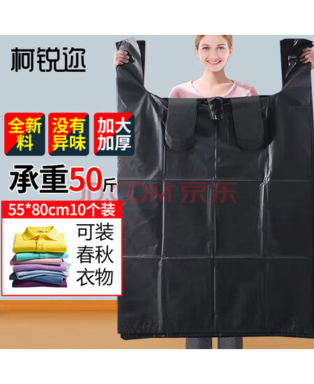 柯锐迩 环卫手提塑料袋 加厚塑料袋 手提袋搬家袋打包袋收纳防尘袋机器零部件背心袋黑色