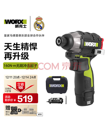 威克士12伏160N无刷电动起子机WU132X.3(2.5AH单电)手电钻螺丝刀小钢炮