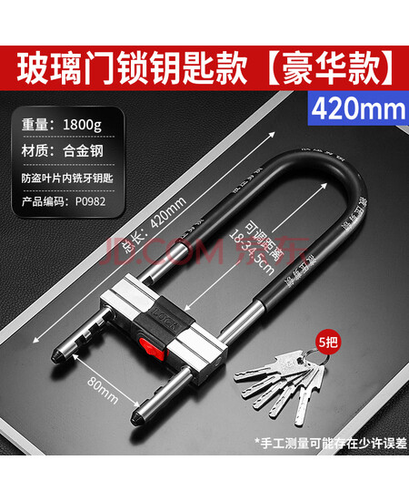 初工U型锁双开玻璃门锁C级锁芯抗剪防盗锁具摩托车电动电瓶车挂锁 420