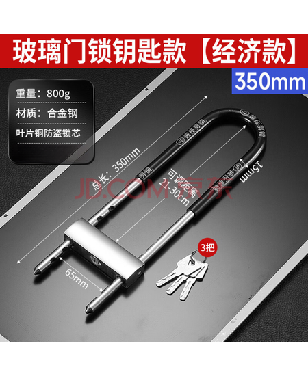 首力玻璃门锁U型锁双开门锁插锁商场店铺商铺门锁摩托车锁【350mm】