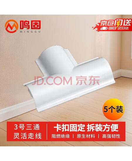 鸣固 弧形线槽配件 pvc线槽接头弧形3号三通5个 CS292296