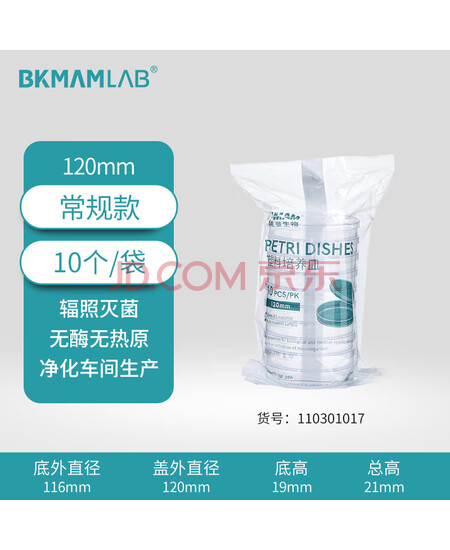 比克曼生物 一次性培养皿塑料平皿细胞培养皿无菌微生物培养【圆形120mm】 10个/袋