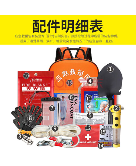 战术国度 实用常备款应急救援包 人防战备/消防逃生/防汛应急/地震救援/急救求生多功能家庭车载应急救援背包